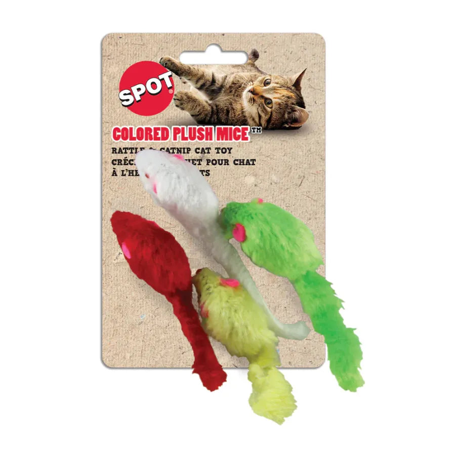 Spot Colored Plush Mice Cat Toy Rattle and Catnip Toy for Indoor Cats and Kittens Bright Colored Classic Toy for Batting and Chasing Around Fun Entertainment for Hours 4.5inch Assorted 4pk