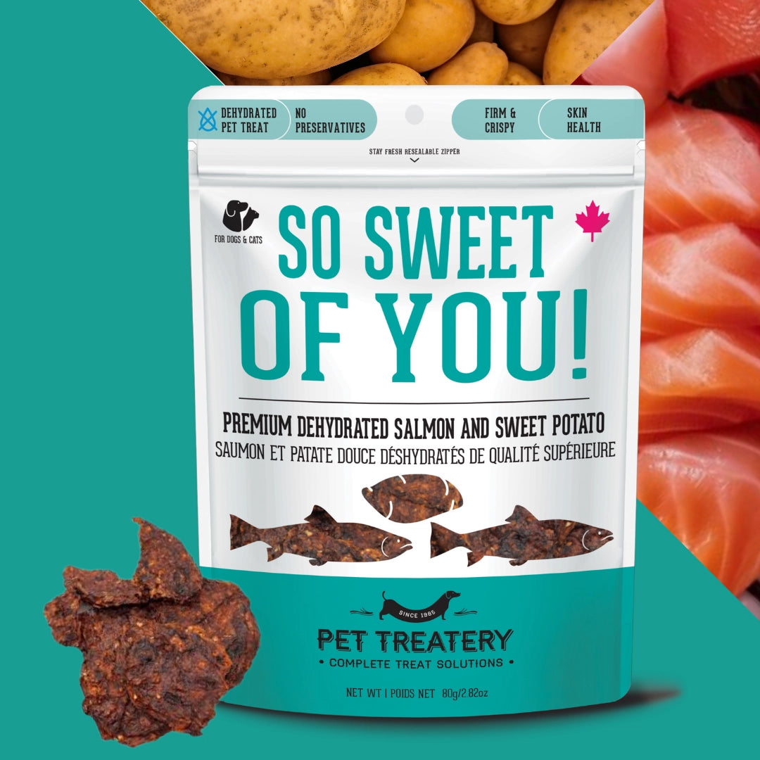 🐟 So Sweet Of You! – Dehydrated Salmon & Sweet Potato Treats (3oz / 80g Bag) Slowly dehydrated. Nutrient-rich. Naturally sweet. Treat your dog to a delicious and healthy snack with So Sweet Of ...