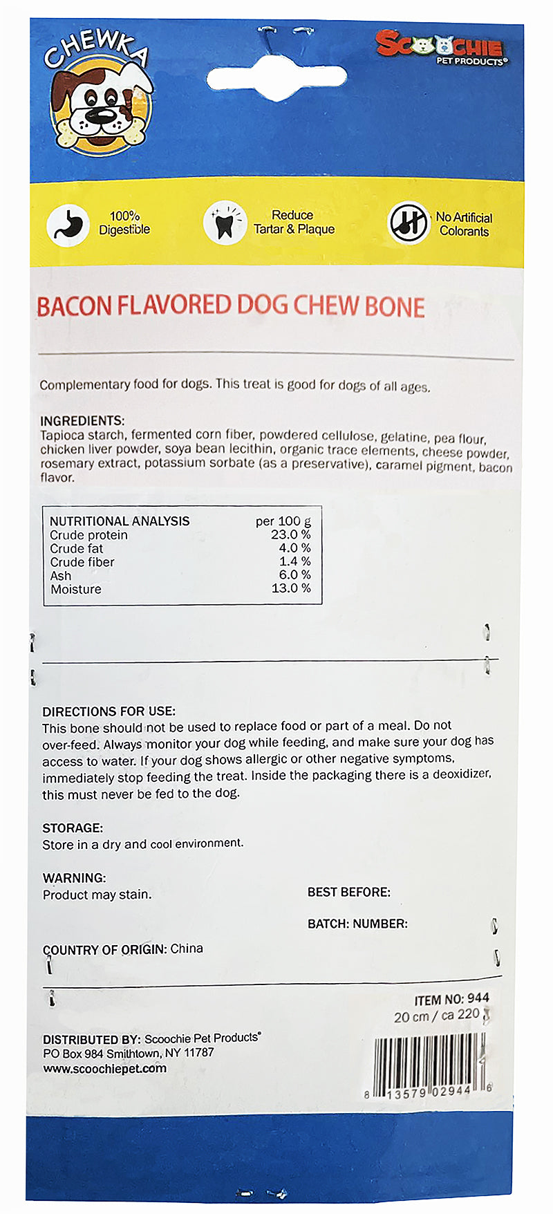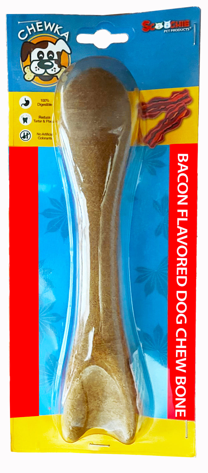 Large Chewka Bone-8" Bacon Flavor for dogs from Scoochie Pet Products