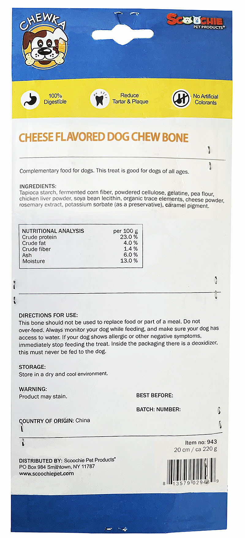Large Chewka Bone-8" Cheese Flavor for dogs from Scoochie Pet Products
