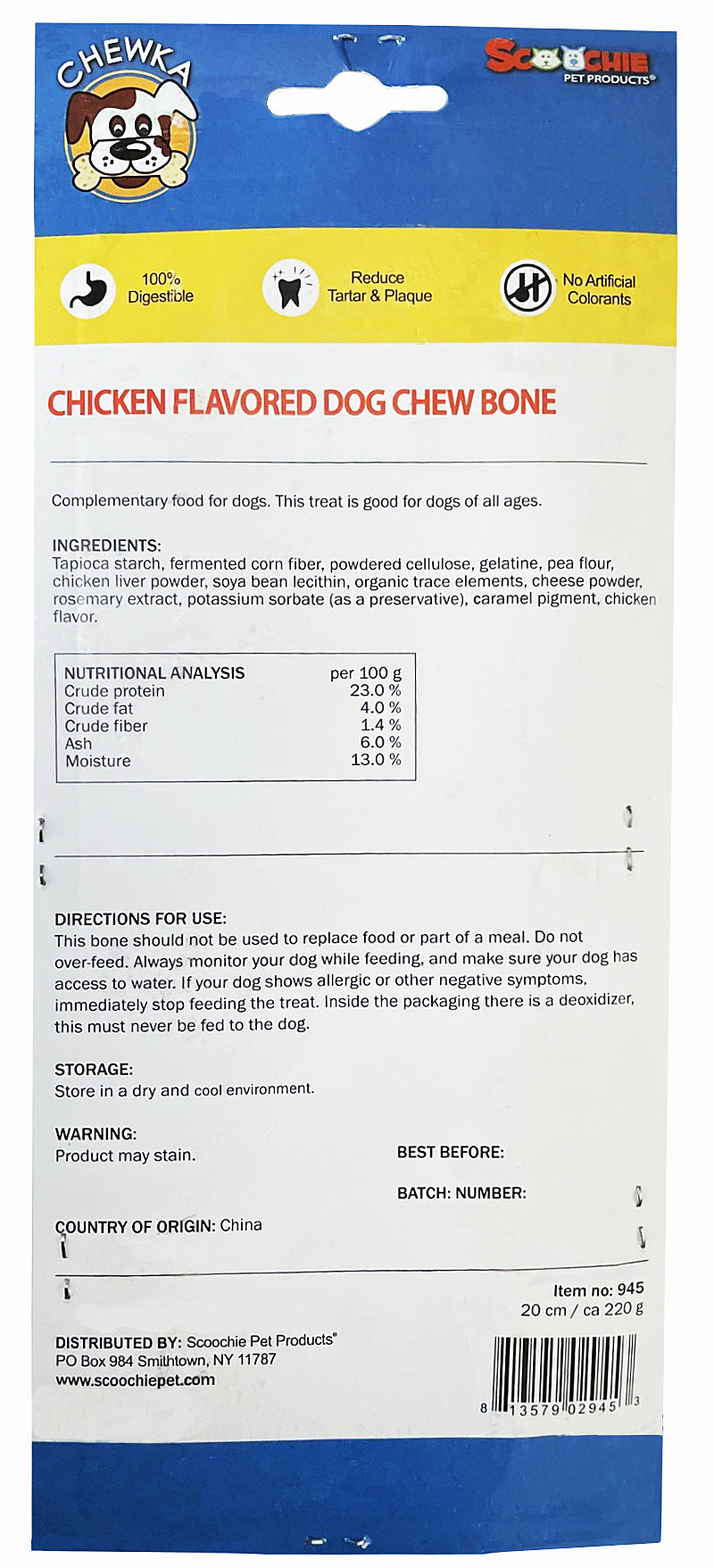 Large Chewka Bone-8" Chicken Flavor for dogs from Scoochie Pet Products