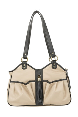 Khaki Metro Couture w/ Black Leather Trim & Tassel Introducing the Khaki Metro Couture - Our best selling khaki metro bag is updated with genuine black leather trim, leather straps, & ...
