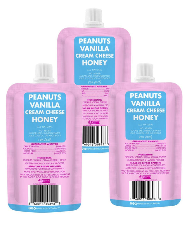 Bark Bistro LIMITED EDITION Glazed Donut Buddy Budder is a nutritious peanut butter treat crafted with your dog’s health in mind. Made from high-quality ingredients, it delivers essential nutrients while satisfying your pet’s taste buds. This healthy option supports a balanced diet and is perfect for training rewards or special moments.